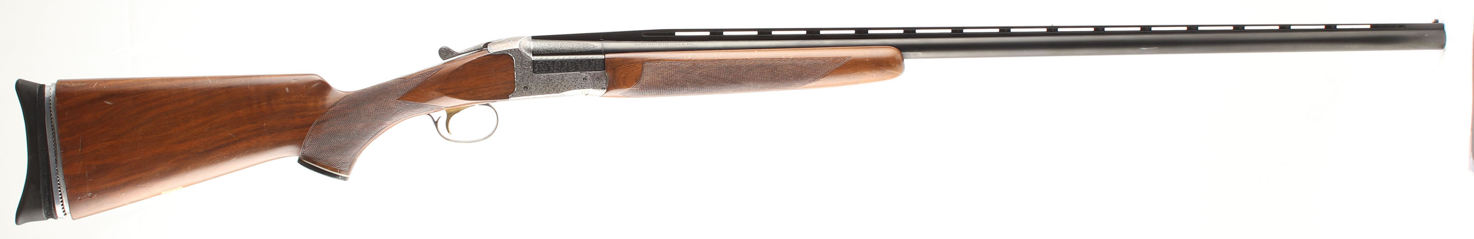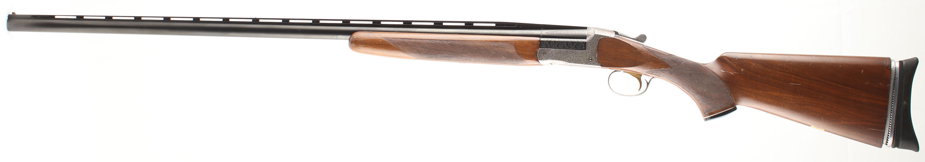 SKB (Ithaca), Century Trap, CAL: 12GA, MFG: 1973-76, SN: S88029, Break Action Single Barrel Shotgun, Choke: Full, Chamber: 2 3/4'', 34'' Barrels With Ventilated Rib. The wood furniture on the gun is very good with some use wear including some small scuffs, dings, & surface scratches throughout. The original metal blue finish on the barrel rates 98% with minimal wear. The metal grey frame & gold tone trigger are very good to excellent with some splotches of patina. Bore is excellent, bright with very minor striations from light use. The serrated rib with engraved borders holds a small steel mid-rib bead & a white front bead. The stock carries an adjustable recoil pad. Comes in a gun guard hard case. LOP: 14 5/8''. FFL Req. - Value: 500 to 1000
