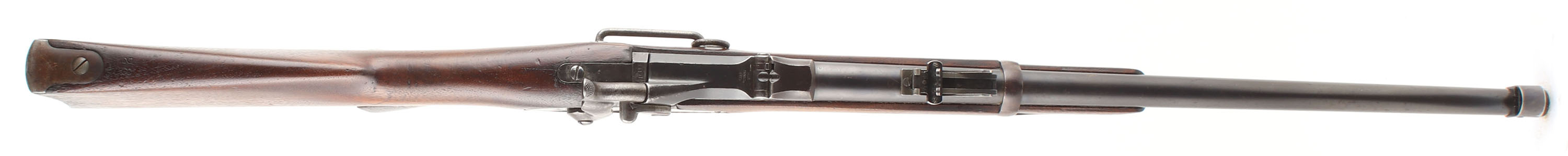 HISTORY: The model 1879 introduced the ''buckhorn'' rear sight to the Springfield as well as some other small internal tweaks to the breech block & action. This sights notch leaf was windage drift adjustable to allowing better zeroing of the rifle, it was not on the fly adjustment as seen on the later Buffington rear sight. The breech blocks would continue to be marked ''1873'' but that marking was removed from the lock plate. This model is also the Transition of the master Armorer at Springfield from Erskine Allin (who came up with the trapdoor conversion) to Samuel W. Porter. This can be seen with both ''ESA'' & ''SWP'' cartouche's seen on the rifles. These were still officially called M1873 by the military but collectors named them M1879's after the year the new sight & modifications were introduced. Older M1873 rifles would also be fitted with the new sight when they went in for refurbishment. This rifle also has a front sight protector & pistol grip added. These are period correct & were made for trapdoors for Military & civilian competition shooting. The pistol grip appears to be a reproduction.