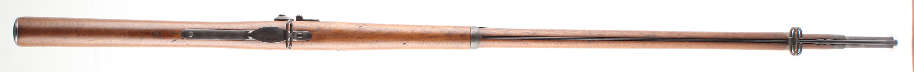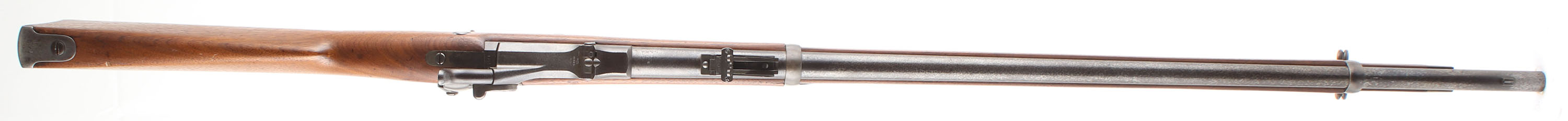 CONDITION: The straight wrist walnut stock is very good as being lightly sanded & re-finished. Stock has small nicks, dings, & scratches from use, older marked are smoothed over from light sanding. The metal is proud to the wood at the toe & lower wrist. The left flat of the stock has the acceptance/inspector's cartouche ''SWP'' over ''1881'' inside a box. The bottom of the wrist is stamped ''?.D.R.'' (first letter faded) & the ''P'' in circle firing proof. The metal has toned to a mix of gun metal gray & dark gray patina with light roughness across the metal. The breech block is marked ''US'', over ''MODEL'', over ''1873''. The rear of the receiver has the S/N. left side of the chamber marked ''V'', over ''P'', over a eagle's head, over ''P'', & the top is marked ''R''. The lock plate is marked with a American great eagle next to ''US'', over ''SPRINGFIELD''. Both barrel bands are marked ''U''. upper extension of buttplate marked ''US'' & ''55''. The bore is good. It's bright & shiny with lightly thinned rifling & spots of roughness/ light pitting. The barrel holds a barleycorn front sight with the M1879 notched ramp base/flip up ladder ''buckhorn'' rear sight. The stock carries a blued steel buttplate. Plate was buffed cleaning with light pitting scars. Rifle has both factory sling loops with the third stacking loop & the cleaning/clearing rod. Mechanical function appears solid. Antique, No FFL Req - Value: 600 to 1200