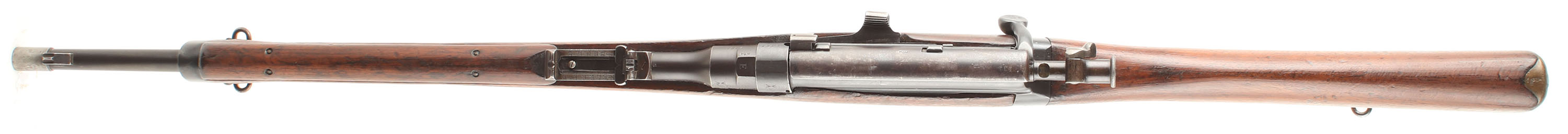 HISTORY: The standard Lee-Enfield for the infantry would be adopted in 1895, the following year a calvary carbine version would be designed & adopted featuring a shorter barrel & a smaller 6-shot magazine to make the rifle handier. In January of 1904, Britan adopted the SMLE Mk.1 which was their first short rifle having its barrel in between the standard rifle & carbine length's. This model would replace both rifles & carbines in service with one standard model for the whole military. Because of the new model adoption many of Britain's older arms would be refurbished & sold to allies, with some being converted to new models before being sold like this rifle. the R.I.C. (Royal Irish Constabulary) was the police force for all of Ireland from 1822 until 1922 when the Irish free state was formed. They would be renamed the Royal Ulster Constabulary & continued as the police force for Northern Ireland until 1998. In march of 1904 the RIC would order 10,00 carbines of their own pattern, converted from L.E.C. Mk.1 & Mk.1*, they had the front sight protector removed, the leather rear sight protector removed with the screw holes in the stock filled, cleaning rod was removed & the stock channel filled (this was done in the 1899 ''*'' update to all the service rifles), the nose cap being replaced with one that has a bayonet lug & sling swivel, the forend was shortened & reconfigured leading to wood inlets & patches, middle barrel band was removed & the retention spring slot in the stock was patched, a steel sleeve was added to the muzzle to mount the 1888 pattern bayonet, & the unit discs in the stock were marked ''R.I.C.''. In 1905, 500 more were ordered, 450 more in 1907, & finally 250 more in 1913. This rifle's unit disc is marked with the issue number ''1486'', indicating this was part of the first shipment of 2,000 rifles sent over from the 10,000 rifle, 1904 contract.