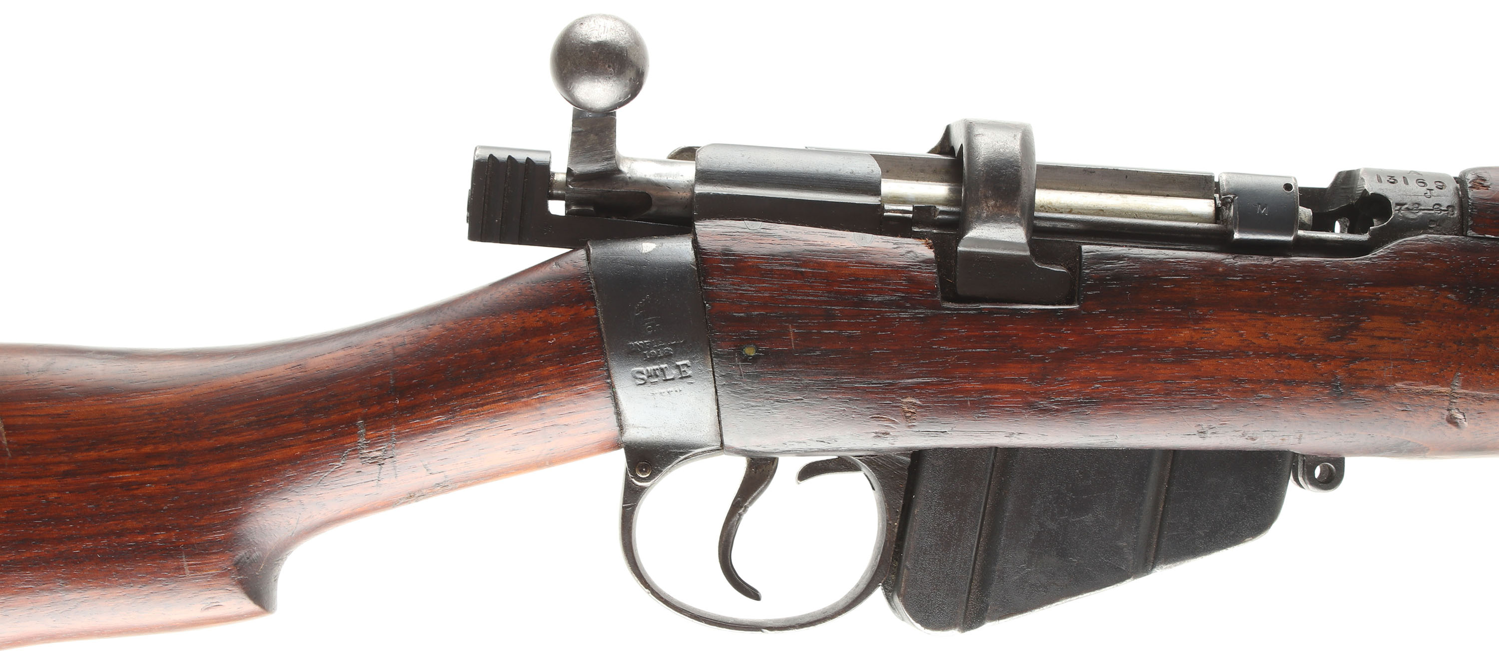 HISTORY: The No.1 MK.III* is a simplification of the No.1 Mk.III that was done to speed up production for WW1. Adopted in 1915 it removed the volley sights & the magazine cut-off from the rifle. This is the longest produced pattern of the SMLE being made from 1915 clear till the 1960's in countries like Australia & India. Total production numbers of the No.1 MK.3* is unknown & mixed up with other No.3 models but is in the millions. Fianna Fail means ''Men of Destiny'' in Gaelic & was the name of a major pollical party in Ireland at the time. Rifles bought by the Irish government from Britain were marked with a double ''F'' in circle on the barrel, receiver, or stock.