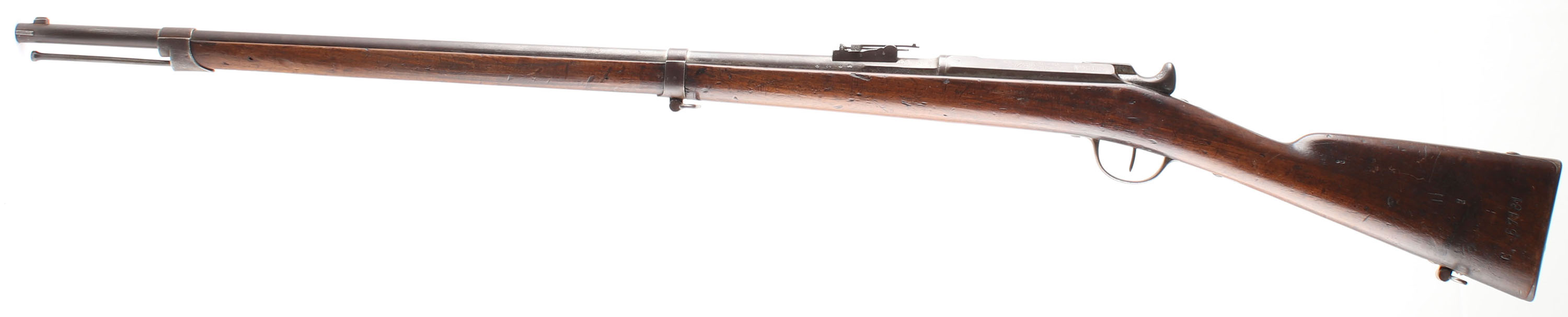 Manufacture d'armes de Saint-Etienne (MAS), Model: MLE 1866 Chassepot, marked with British proofs, Cal: 11mm Needle fire, MFG: 1870, S/N: K19682, Bolt action single shot needle fire rifle, 32 1/2'' barrel.