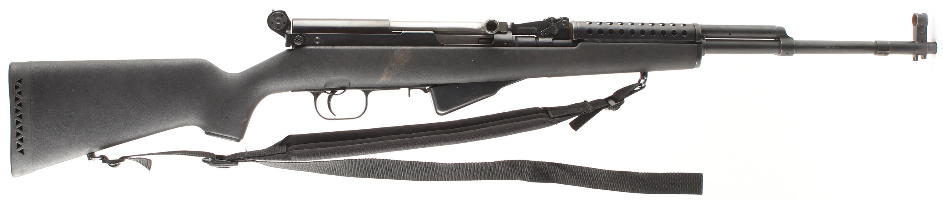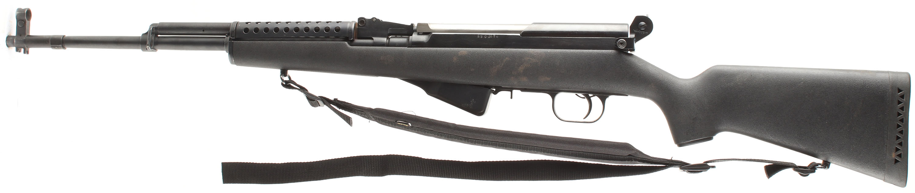 CONDITION: The Choate Tool, semi-pistol grip black polymer stock is very good. Stock has light stains, scuffs & use wear. Metal ''cheese grater'' upper handguard. The receiver has been re-blued & rates 94% with light scratches & light thinning. The Barrel retains the original finish & rates 90% with scratches, & light thinning. The left side of the receiver is marked with the S/N. rear of the barrel is marked with a couple proofs. The right end of the barrel is marked with import stamps. All visible S/N marked parts are matching. The bore is excellent, bright & mirror like with little to no visible wear. Chrome lined bore. The barrel holds a post front sight with a round hood protector. The barrel mounted rear sight has been removed (just the leaf gone, the base, flat spring, & pin are still there) & has been replaced with a Tech Sights, receiver mounted aperture sight. The stock carries a ventilated rubber buttpad. Bayonet lug has been removed. Factory fixed 10 Rd. mag. Comes with a black nylon sling. Mechanical function appears solid. FFL Req. - Value: 350 to 700