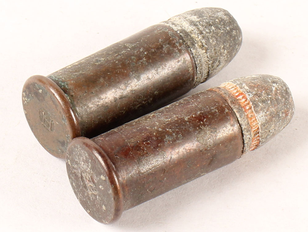 | Lot of 2, 44 Henry Flat Rd, long case, raised ''H''. Grade G...