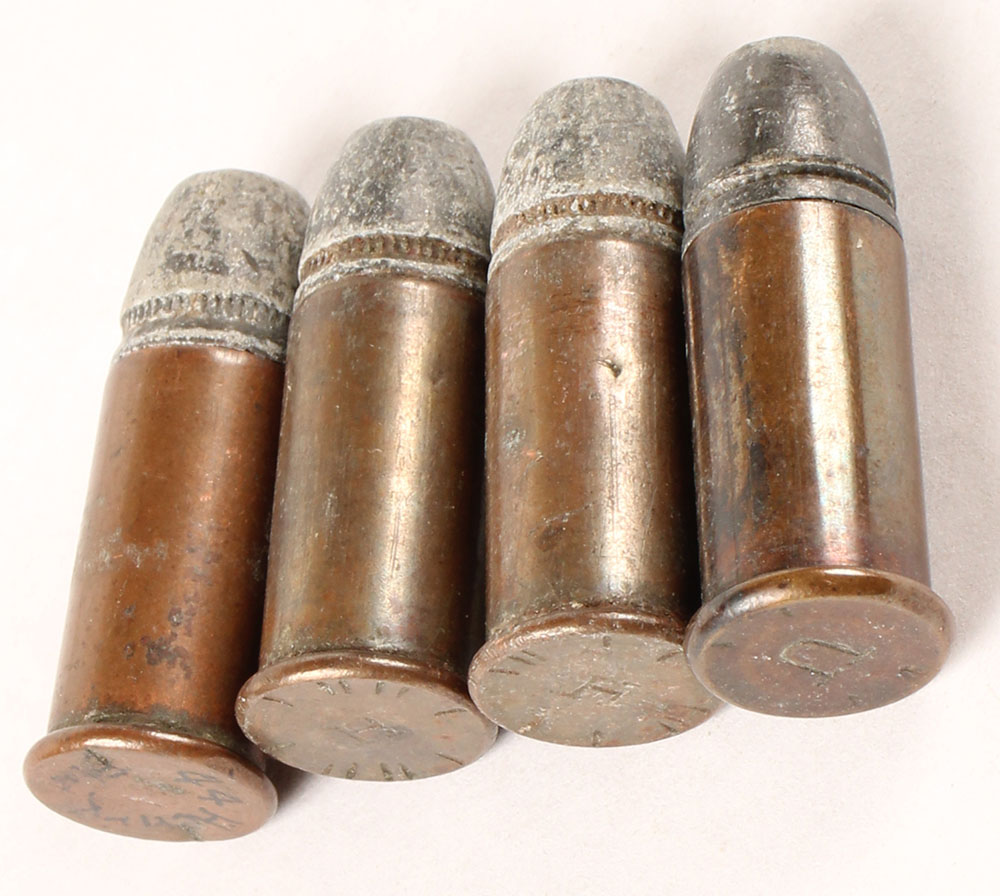 Lot of 4, 44 Henry L.C. (3) imp ''H'', (1) imp ''U'', light firing pin indent. Grade Very Good - Value: 10 to 20