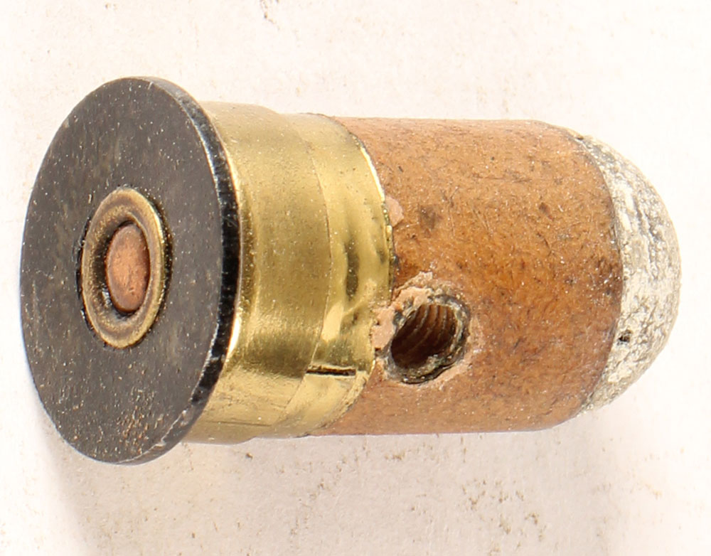 .577 Tranter Revolver. NHS. RN Lead. Paper over coiled brass case and iron rim. One non-factory hole in case. Grade Very Good ++ - Value: 20 to 40