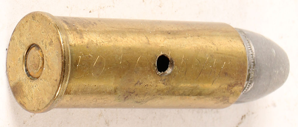 50-50 Maynard Mdl 1882. NHS. FN Lead. One non-factory hole in case. Grade: Very Good - Value: 70 to 150