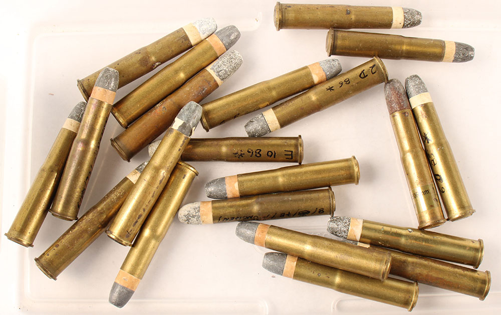 Lot of 21, 11mm Mauser. Various German military headstamps, some with reload marks on head. All with FN Lead, most with paper patch. Grade Very Good - Value: 40 to 80
