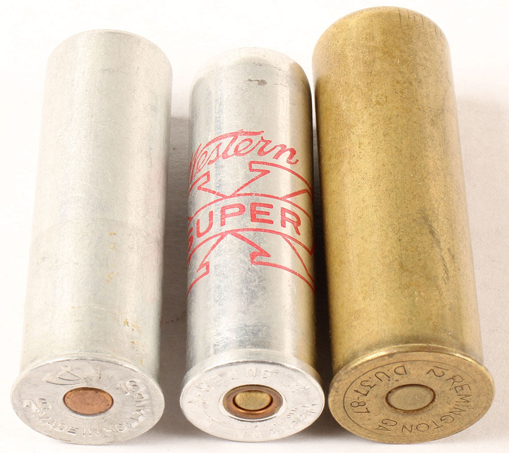 Lot of 3 loaded brass or aluminum shot shells. Grade: Excellent - Value: 6 to 30