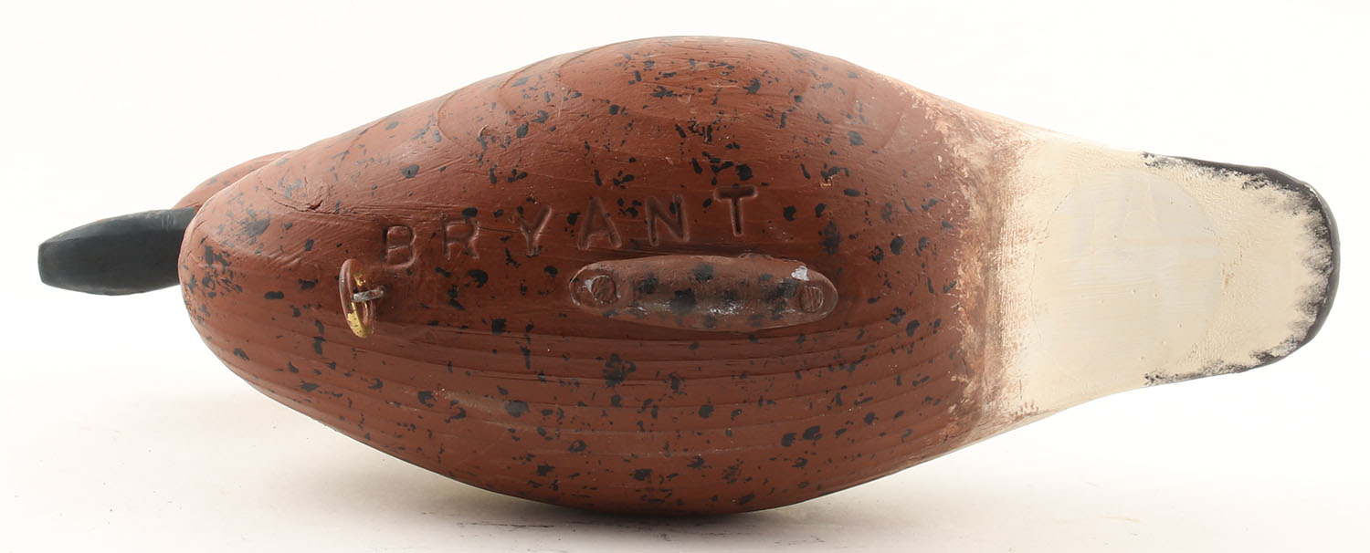 Cinnamon Teal Drake by Bryant, MD, painted eyes, hollow wood, original paint, structurally excellent, marked ''BRYANT'' on bottom, 13'' OAL. Grade: Excellent - Value: 50 to 100