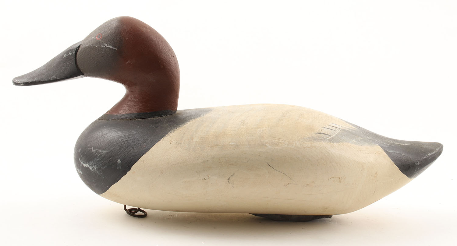 Canvasback Drake by Unknown Maker, painted eyes, solid wood, original paint, structurally excellent, 16'' OAL. Grade: Excellent - Value: 40 to 80