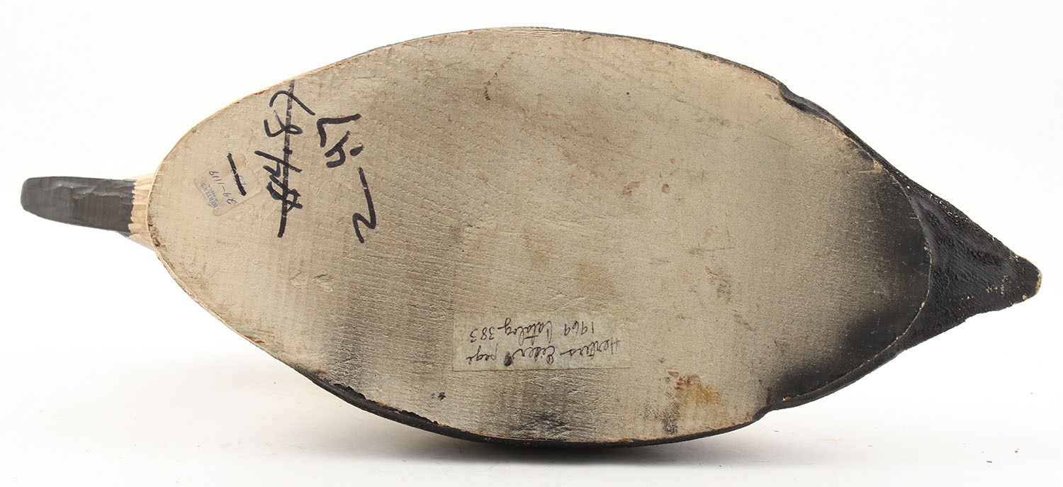 Eider by Herter's, Waseca, MN, 1969, in 1969 catalog page 383, glass eyes, solid wood, original paint, structurally excellent, 18'' OAL. Grade: Very Good++ - Value: 40 to 120