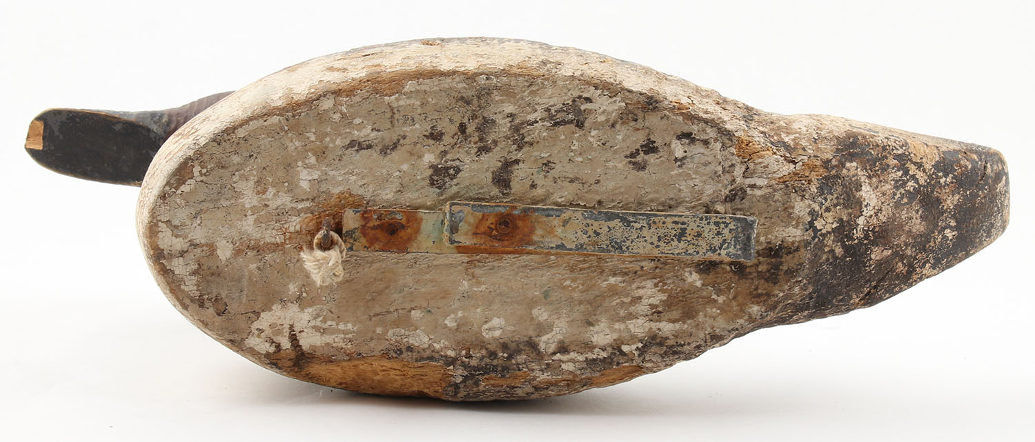 Pintail Drake by Unknown Maker, glass eyes, solid wood, original paint, structurally sound, 16'' OAL. Grade: Good + - Value: 20 to 60