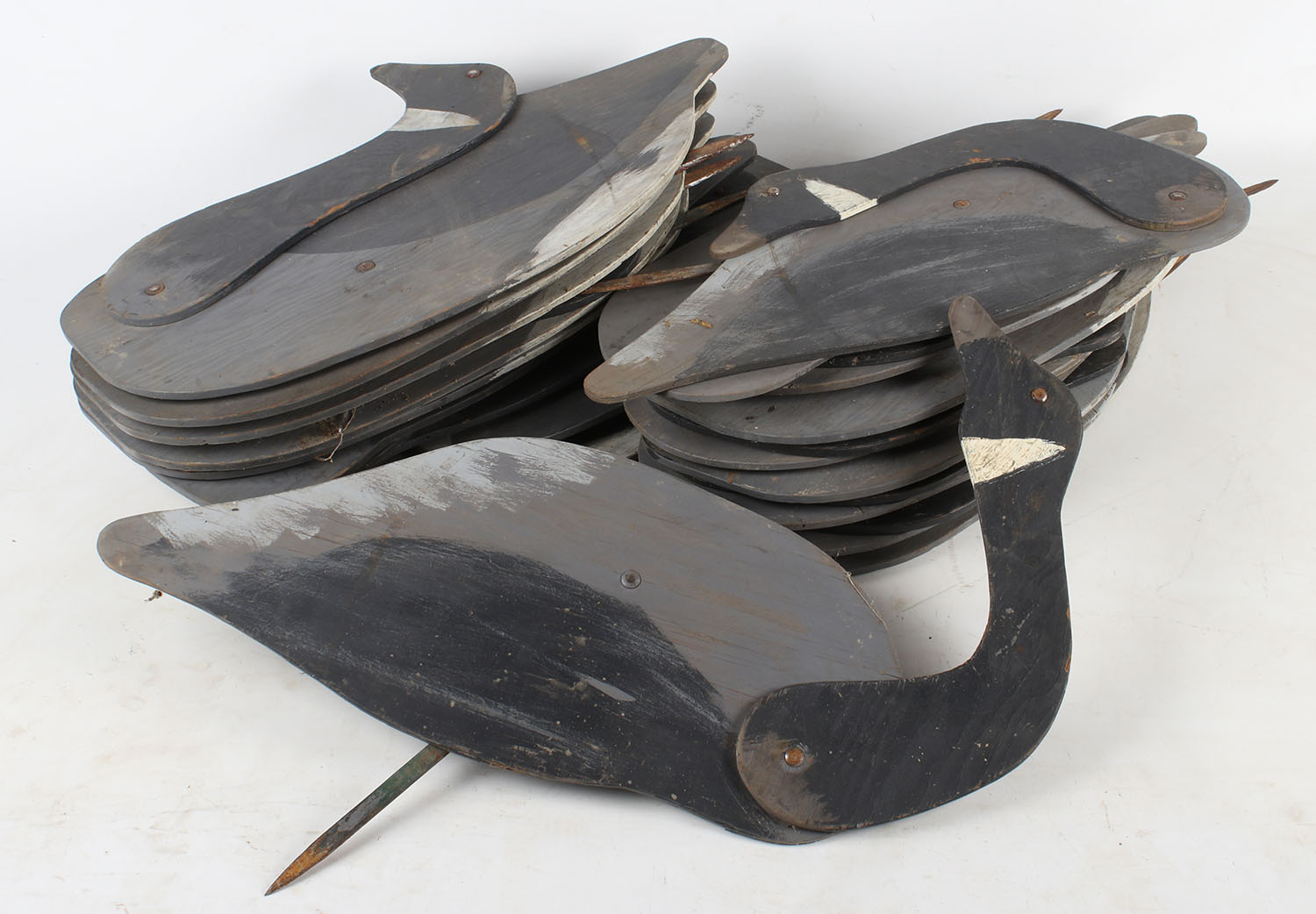 Large lot of utilitarian folding goose decoys, have stakes. Grade: Very Good - Value: 10 to 50