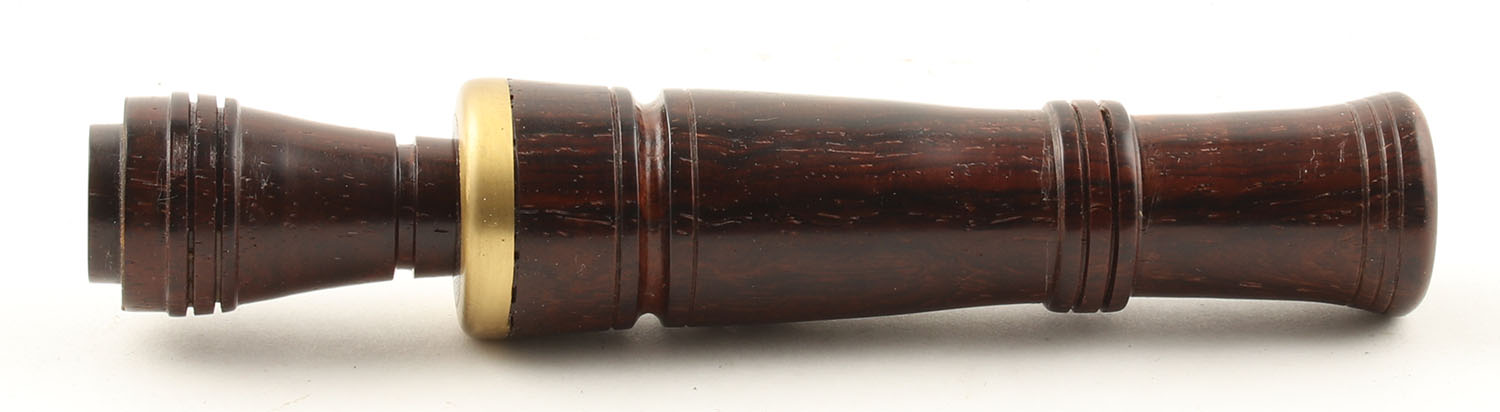 Gene Parrish Duck Call, Erin, TN, 1929-2009, marked on barrel, plastic reed, 6'' OAL. Grade: Excellent - Value: 120 to 250