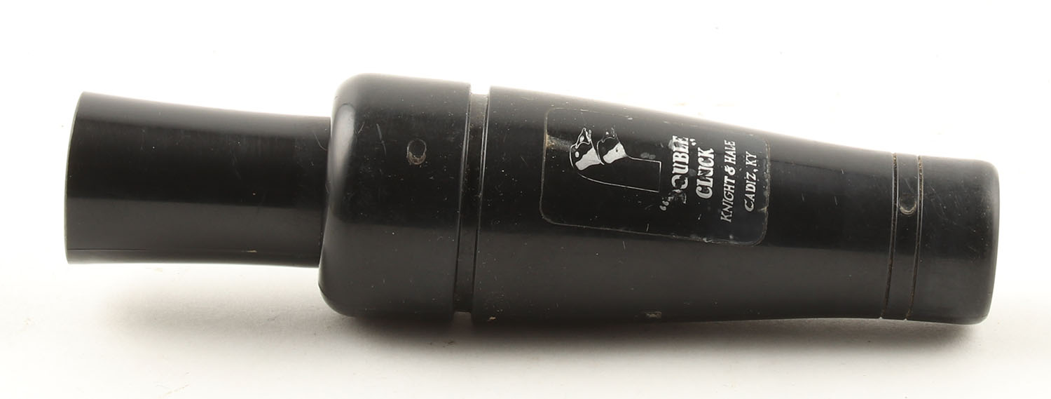 Knight & Hale ''Double Cluck'' Goose Call, Cadiz, KY, marked with sticker on barrel, plastic reed, 5'' OAL. Grade: Very Good - Value: 6 to 30