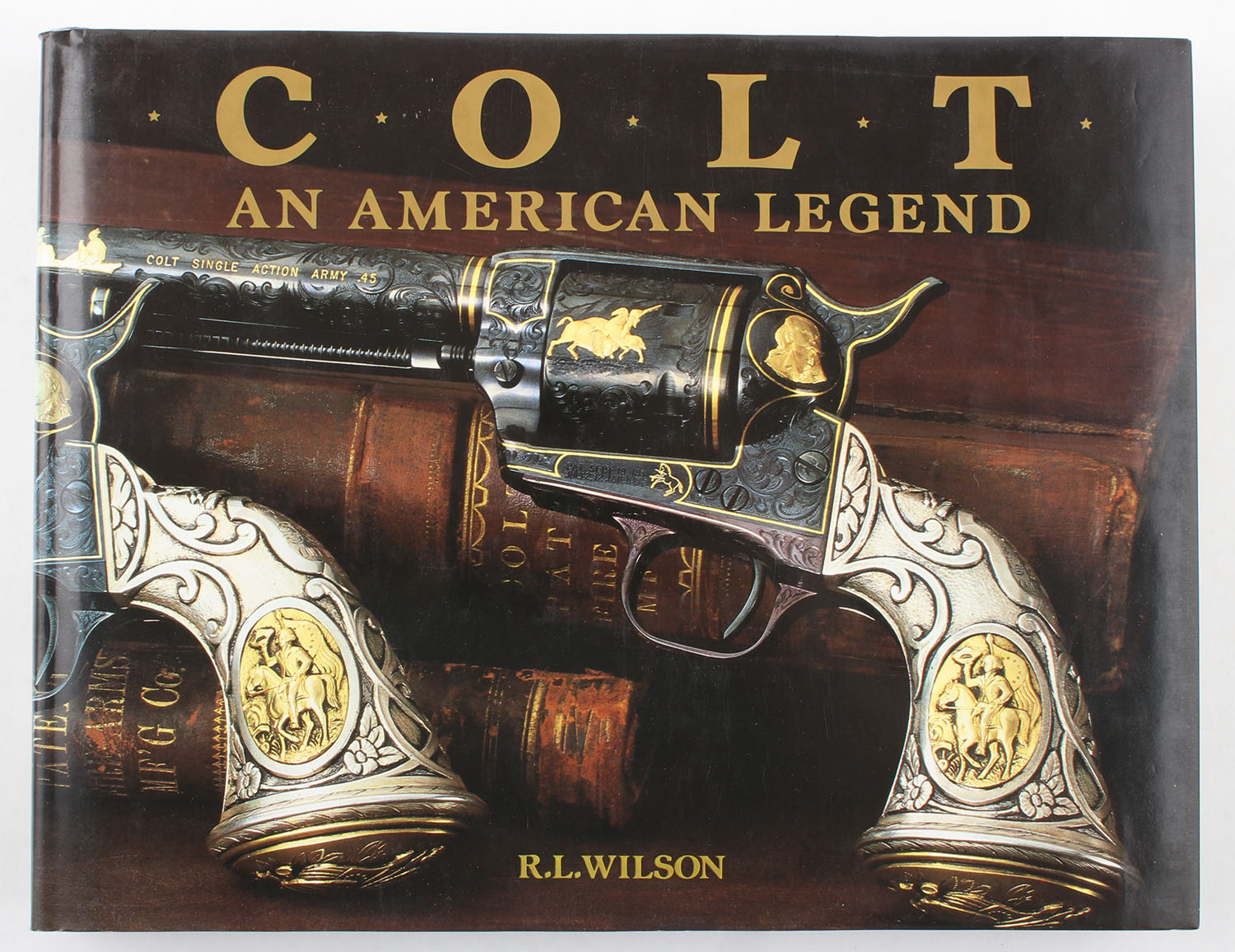 Colt, an American legend: The official history of Colt firearms from 1836 to the present by R.L. Wilson 1985, 8 1/2'' x 11''. 406 pages, pages clean, binding tight, hardcover and dustjacket excellent, b/w and colored images. Value: $80 Grade: Excellent ++ - Value: 4 to 80