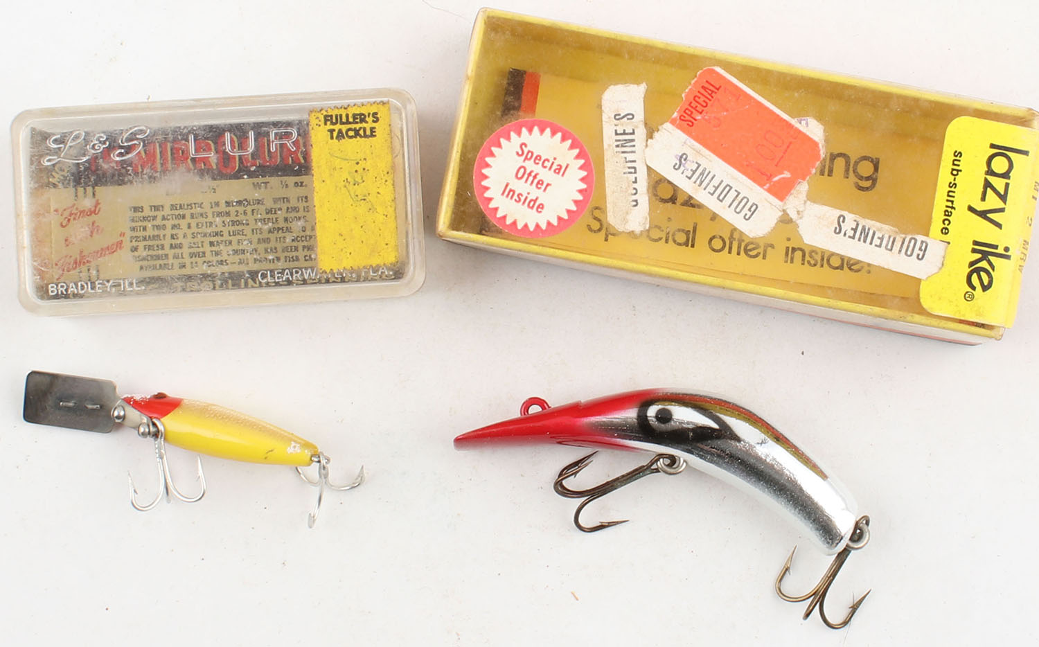 Lot of 2 Boxed Fishing Lures, different mfg, styles & sizes, boxes may not be correct to lures. Grade: Very Good - Value: 6 to 20
