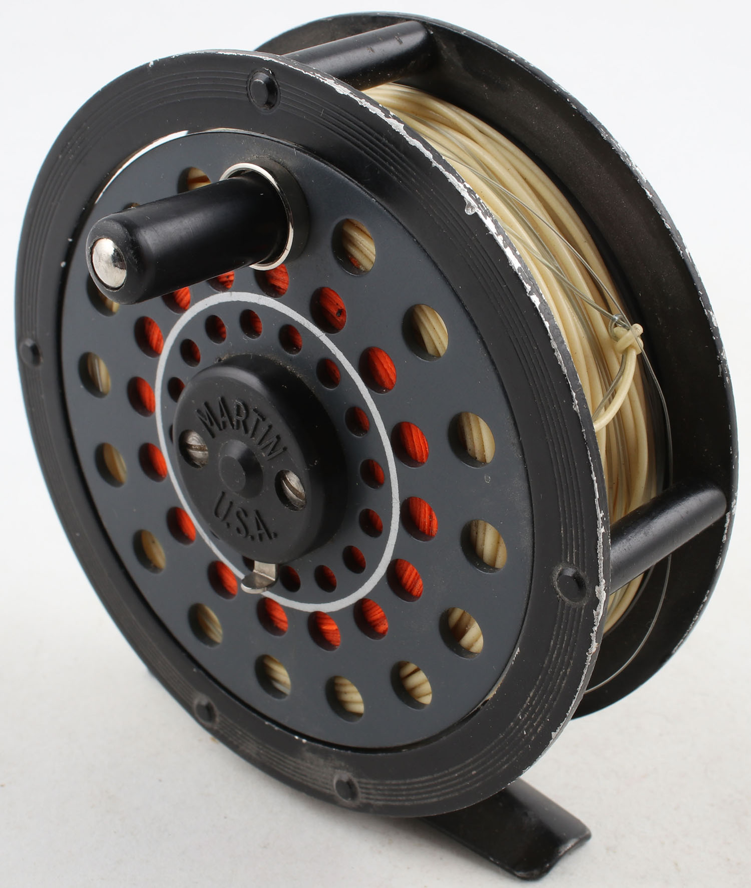 Martin 65, single handle, marked on side plate & spool cap, reel turn is slightly bumpy, strong clicks. Grade: Very Good + - Value: 10 to 50