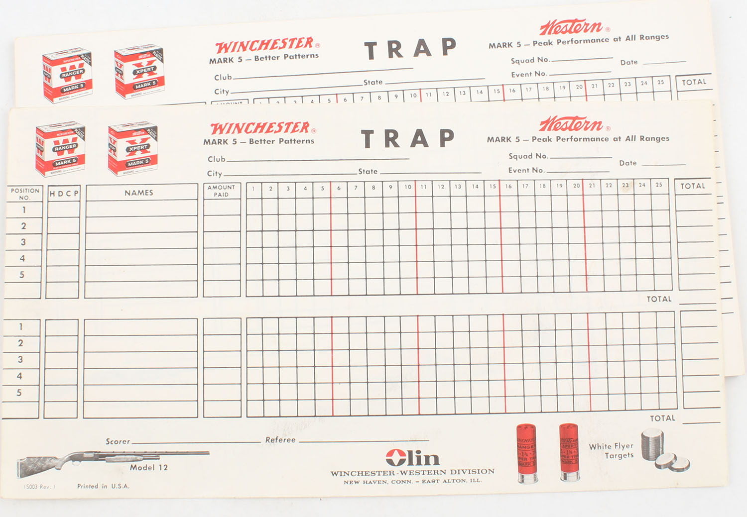 Pad of Winchester- Western Trap Shooting Scorecards. Grade: Excellent - Value: 10 to 50