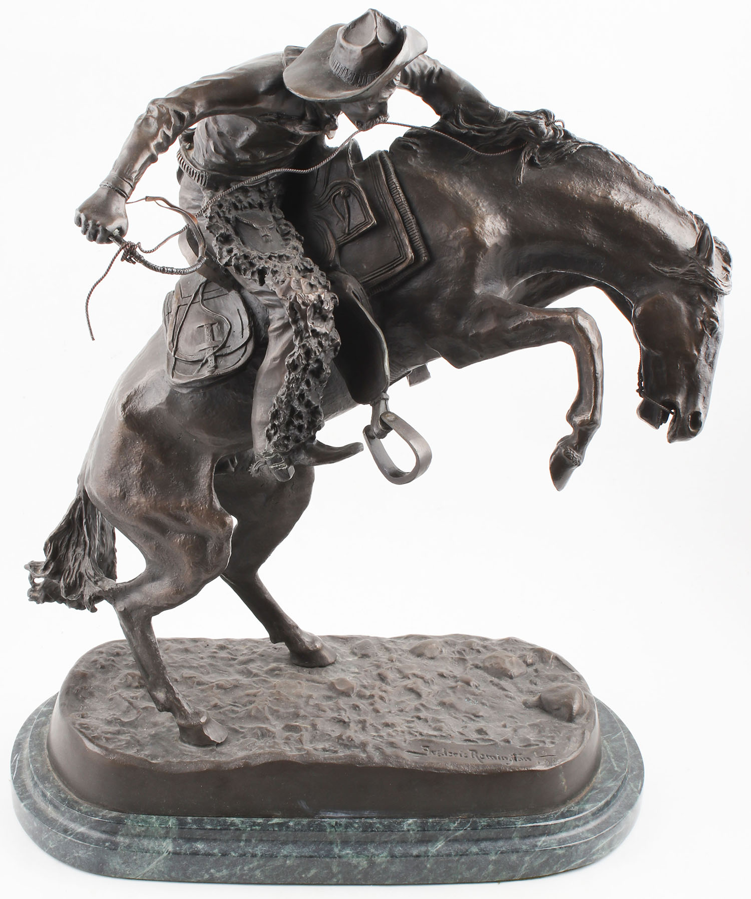 Frederic Remington Bronze Statue, ''THE BRONCO BUSTER'', marked 10/100 on base, 22'' tall x 16'' wide. Grade: Excellent - Value: 2000 to 5000