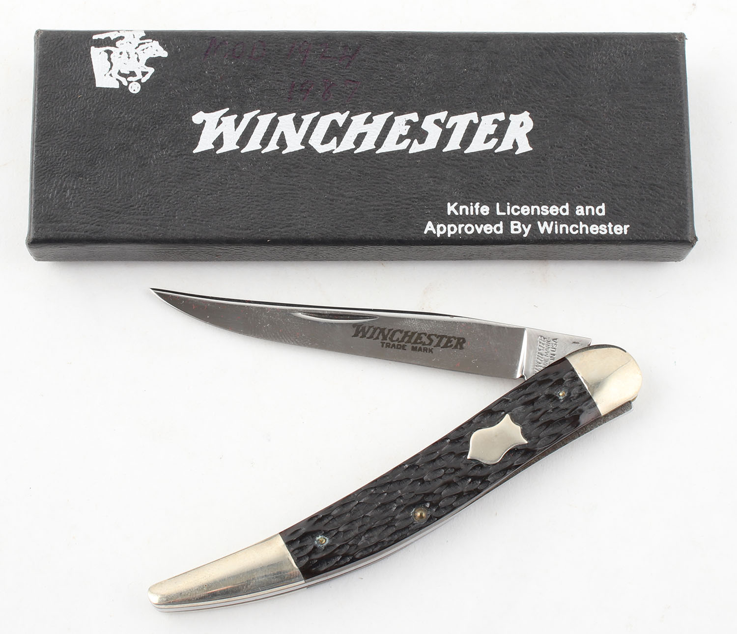 Winchester knife in orignal box, 1924 '87, stag handles. Grade: Excellent ++ - Value: 100 to 300