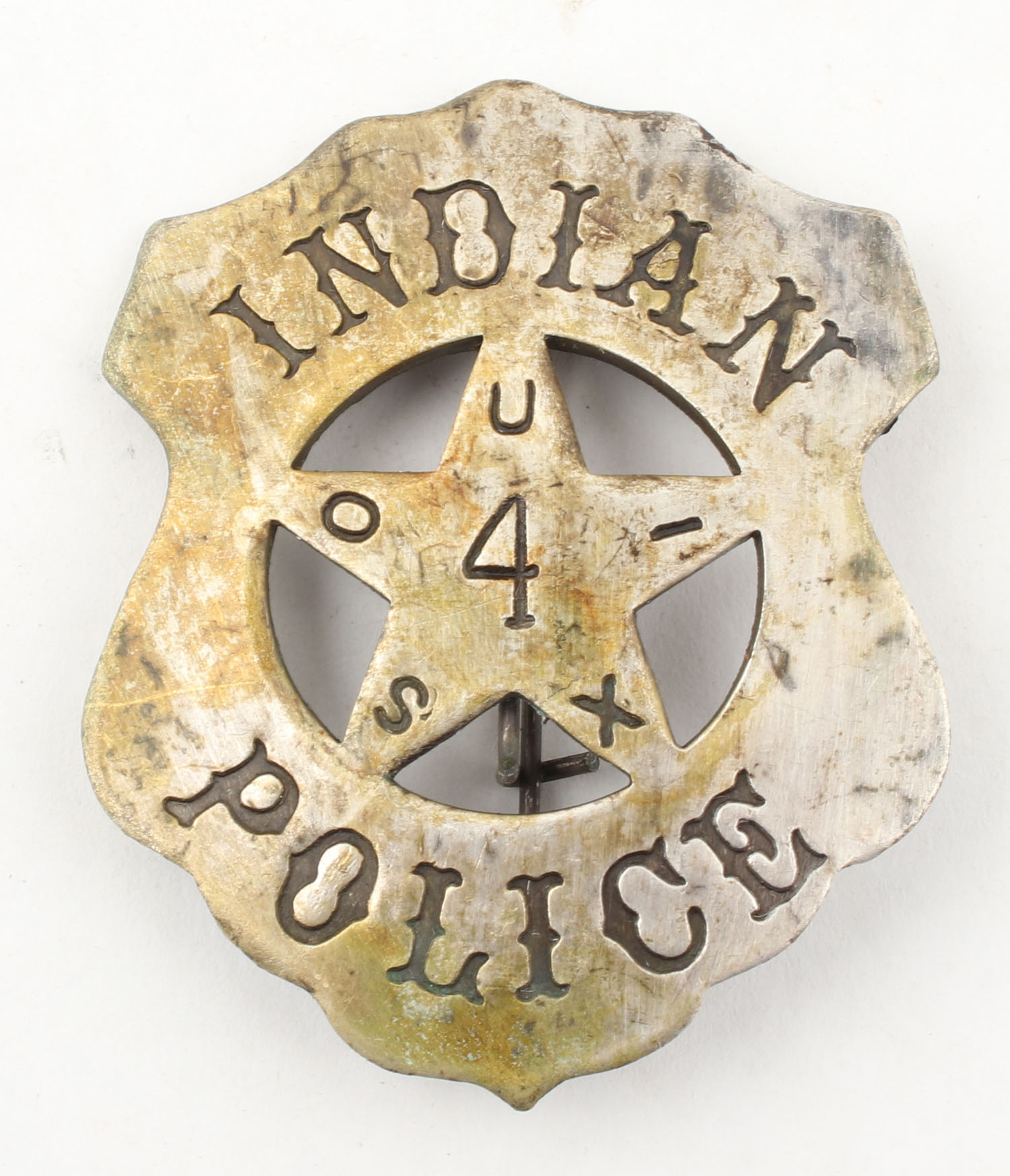 Indian Police badge Sioux #4 dated 1888 pinback. Grade: Very Good ++ - Value: 100 to 400