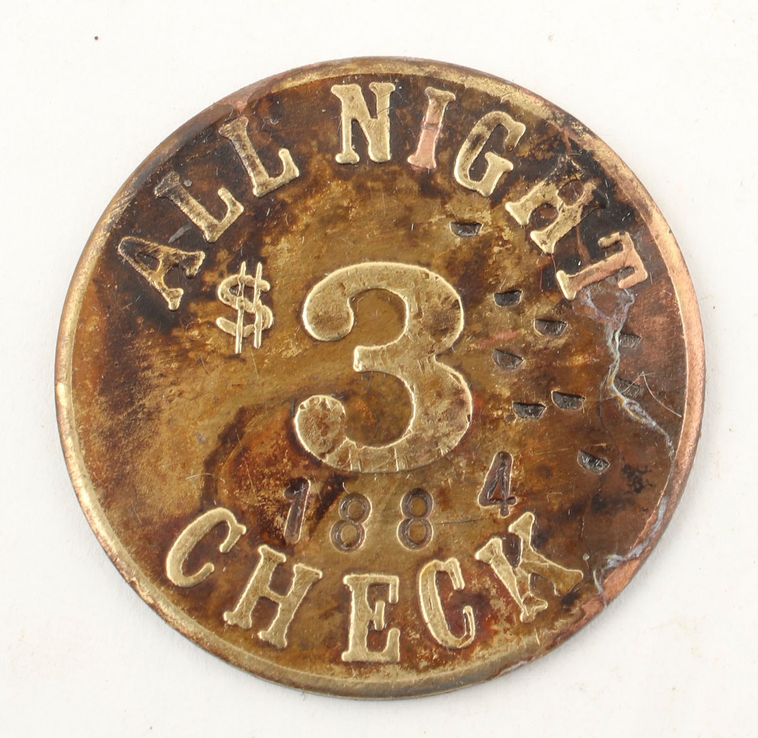 Brothel token, double sided, dated 1884. Grade: Excellent - Value: 10 to 40