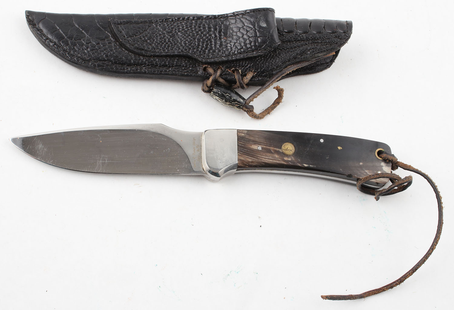 Danilo R Roman Design Italy No 197 knife, fixed 4'' blade, has sheath, solid and clean. Grade: Excellent - Value: 30 to 90