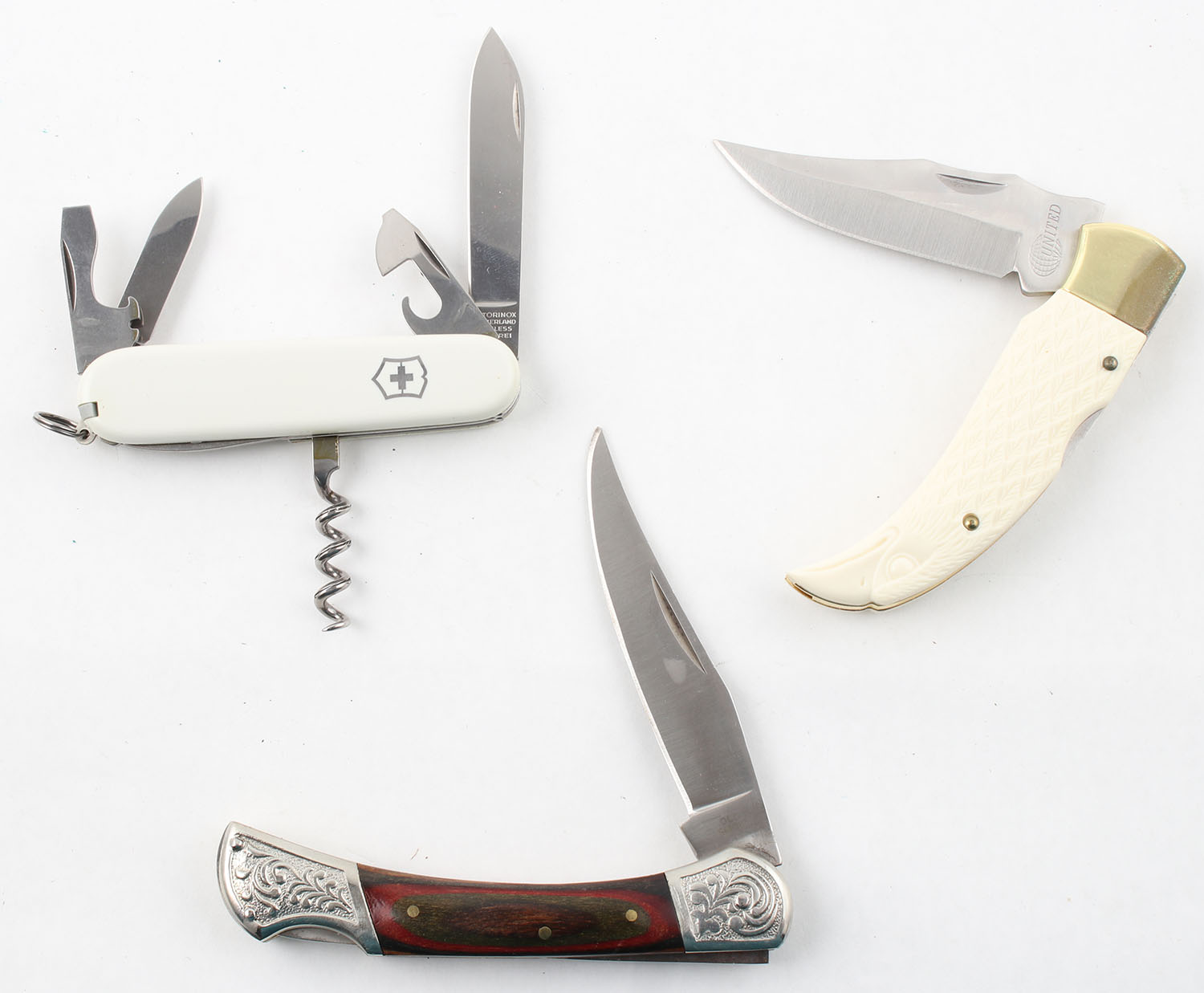 Lot of 3 folding blade knives, all solid. Grade: Excellent - Value: 20 to 60