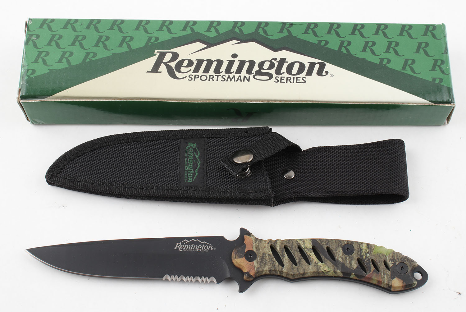 Remington knife, 6.5'' blade, Model 19780, has sheath and orignal cardboard box. Grade: Excellent ++ - Value: 20 to 80