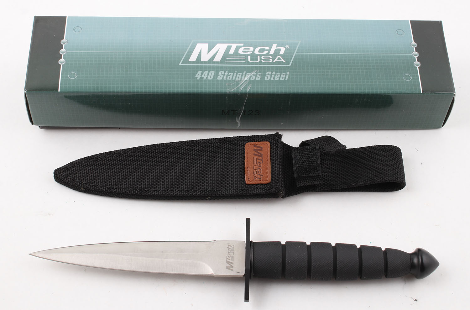 Mtech knife, 6.5'' blade, has sheath and orignal cardboard box. Grade: Excellent ++ - Value: 8 to 50