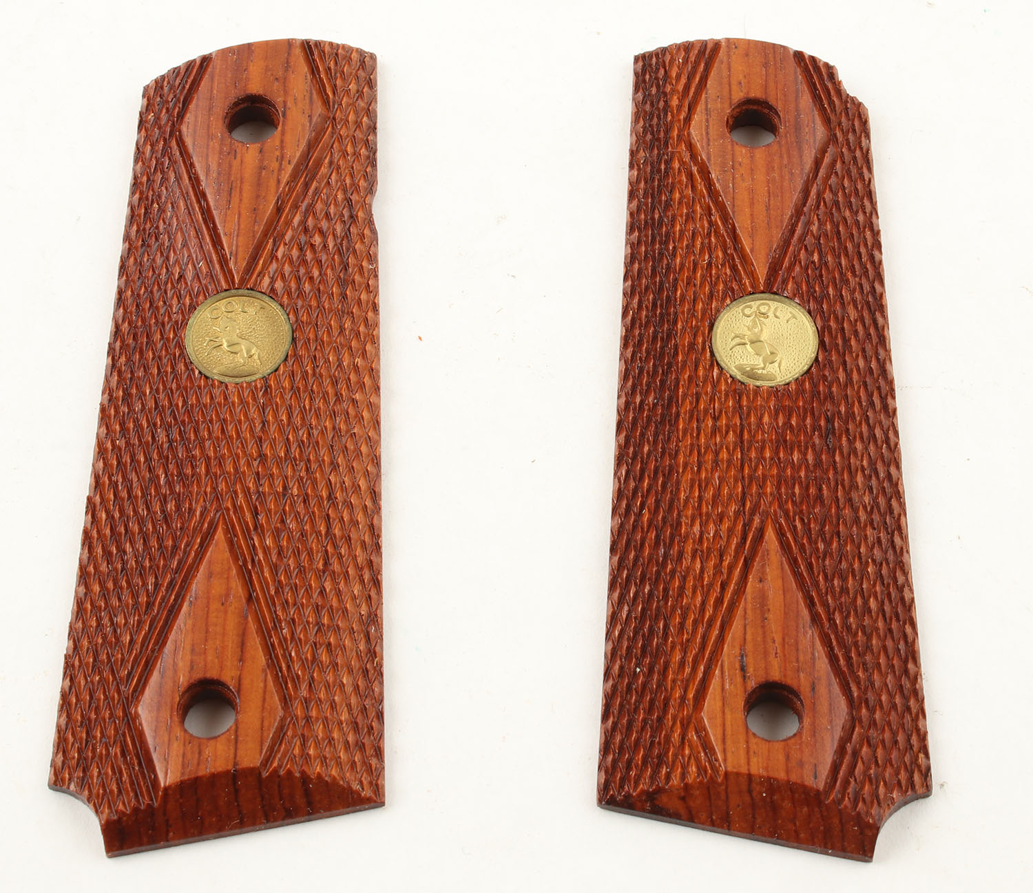Colt 1911 Checkered wood pistol Grips. Grade: Excellent - Value: 20 to 80