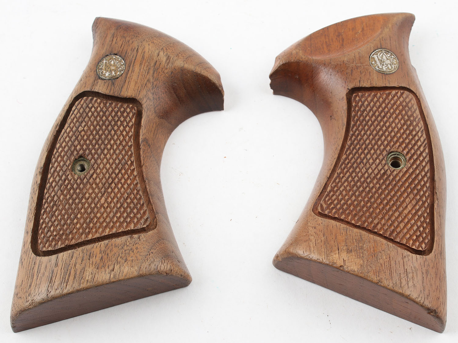 S&W Checkered wood pistol Grips. Grade: Excellent - Value: 30 to 90