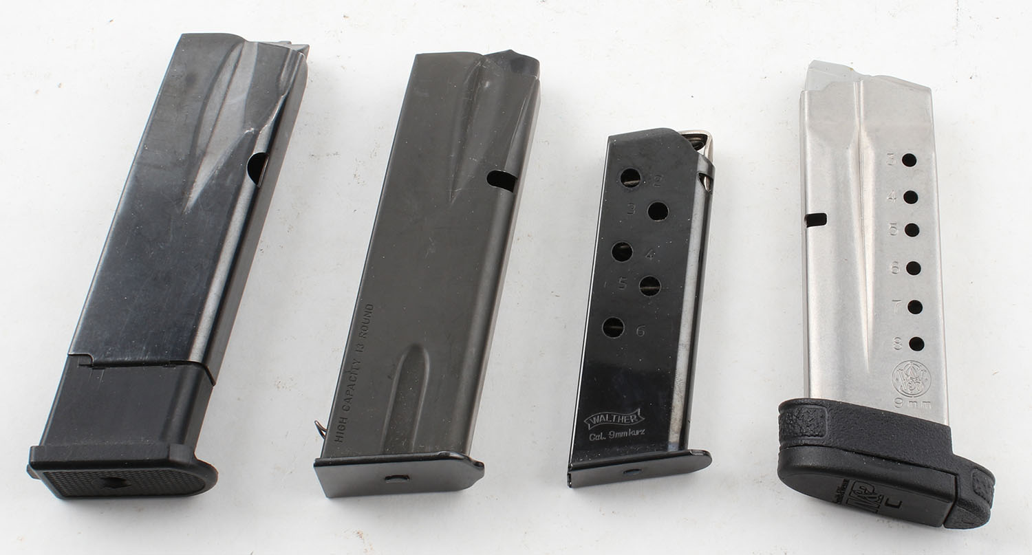 Lot of 4 9mm pistol mags. Grade: Excellent - Value: 20 to 60