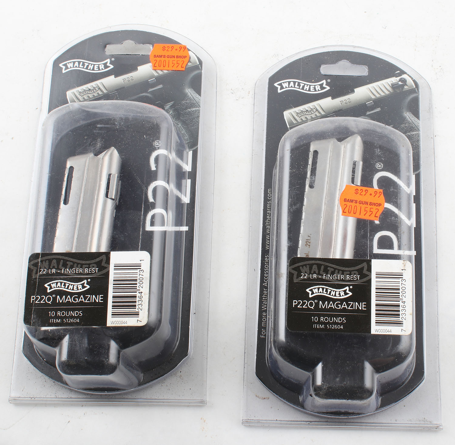 Lot of 2 Walther P22Q .22 LR pistol mags. Grade: Excellent - Value: 10 to 50