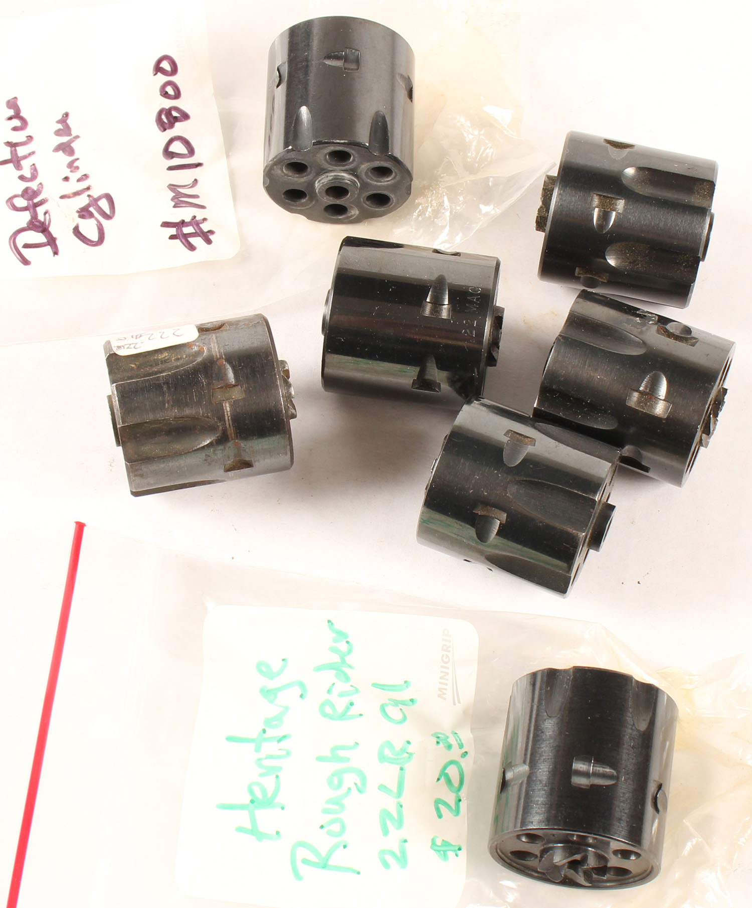 Lot of 7 cylinders, 2 .22 mag and 5 .22 LR. Grade: Very Good - Value: 50 to 200
