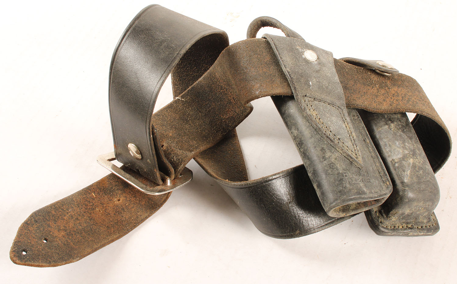 Leather pistol belt and holster, all solid. Grade: Very Good - Value: 6 to 40