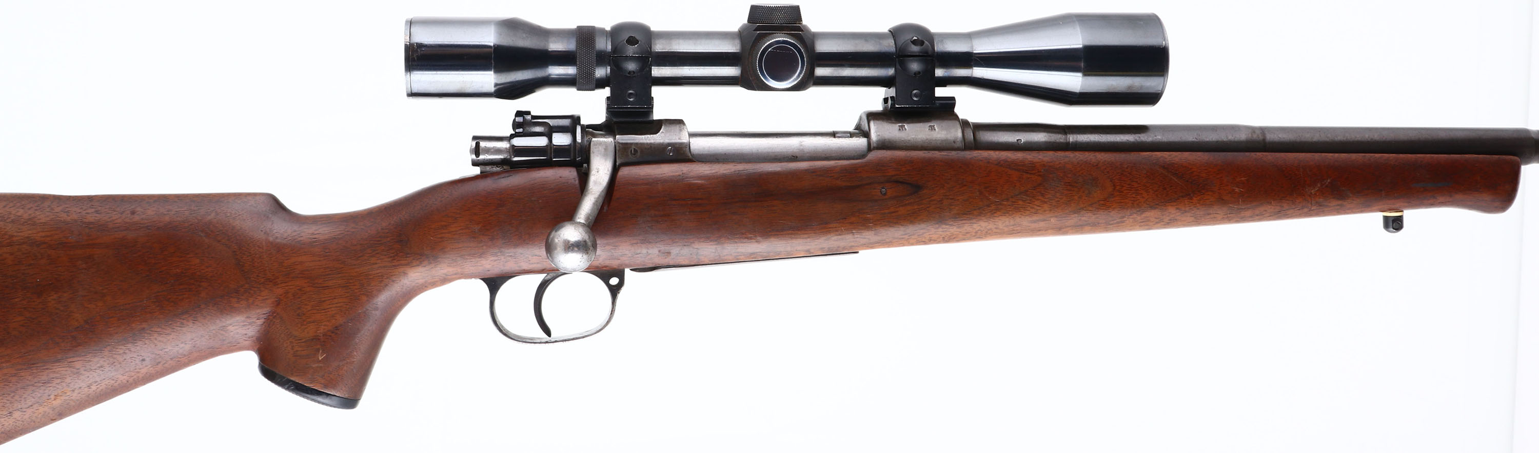 Waffenfabrik Brunn (Czech), Model: G.24 (T), Cal: 7x57mm, MFG: 1938-42, S/N: 5775, Bolt action rifle, 24'' Barrel. The capped pistol grip & cheeked monte Carlo sporting stock is very good with light scratches, small dings & wear from use. There is a small edge chip at the toe. The receiver has worn gun metal gray, with brown patina. The metal finish on the barrel has thinned & toned gray, with 50% coverage. Left side of receiver is marked with iron eagle proof mark, S/N, ''FOX'', ''G.24(T)''. The right side of receiver is marked with additional proof marks. The left side of barrel is marked, ''0'', X'd out number, X'd out number, ''7X57''. The top of barrel is marked ''89''. The right side of barrel is marked with proof marks. Bore is very good. Mounted with an unmarked scope, which appears to be a Redfield. Stock carries a BISHOP plastic checkered buttplate. Sling studs. FFL or C&R Req. - Value: 200 to 400