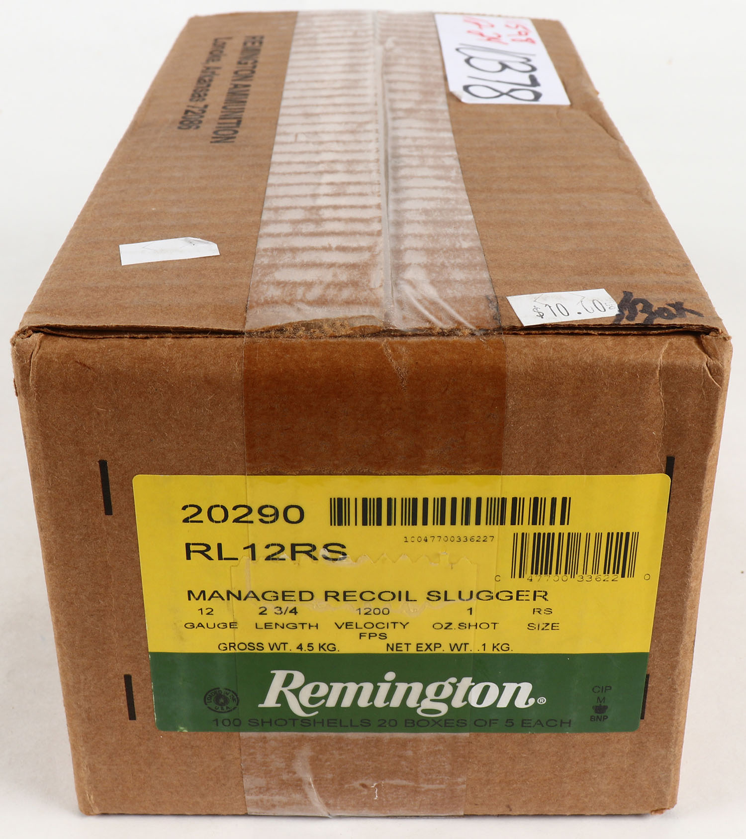 FULL CASE of REMINGTON, Managed Recoil Slugger, 12ga., 2 3/4'', shot size Recoil Slugger, FULL & SEALED, 100rds. Grade: Excellent ++ - Value: 50 to 200