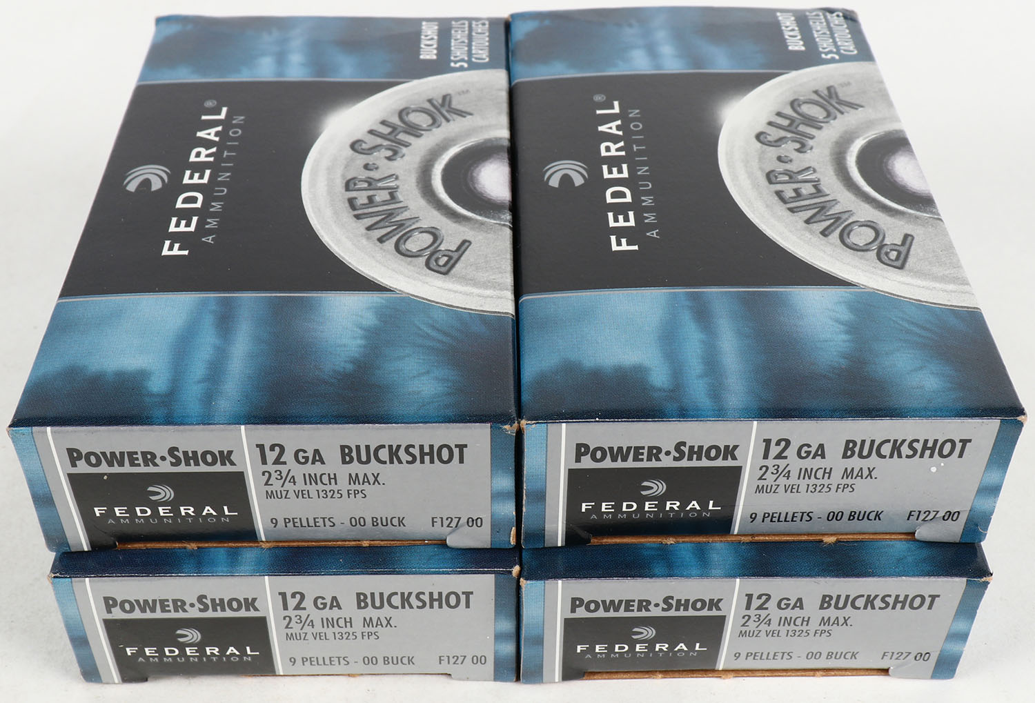 Lot of 4 Federal, 12ga., 1pc., Appears Full, shot size 00 BUCK, multi-colored boxes. Grade: Excellent - Value: 10 to 40