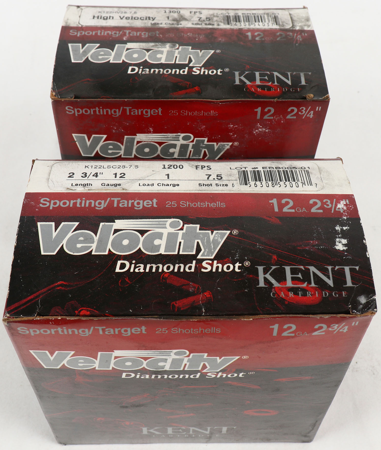 Lot of 2 Kent, 12ga., 1pc., Appears Full, shot size 7 1/2, multi-colored boxes. Grade: Very Good - Value: 10 to 30