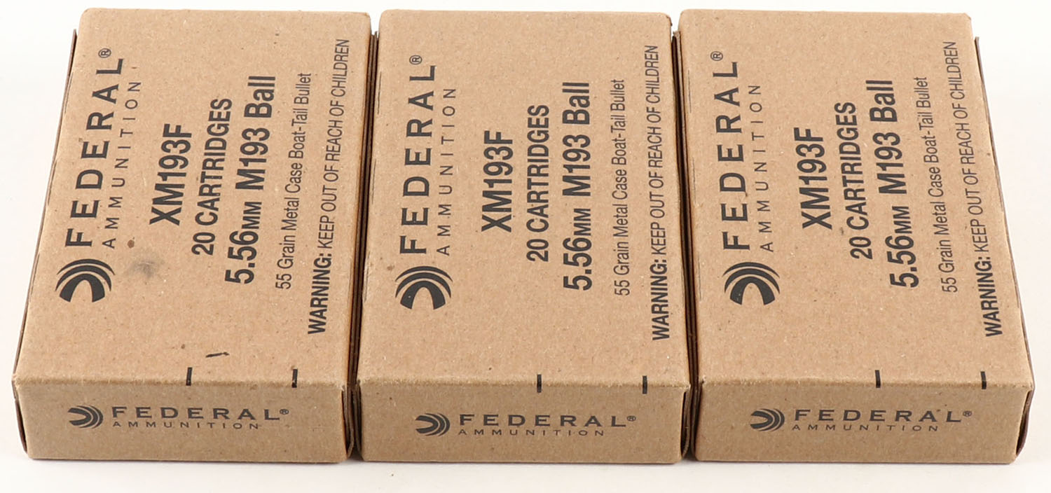 | Federal, Lot of (3), 5.56mm Ball M193, 55 Grain Metal Case Boat-...