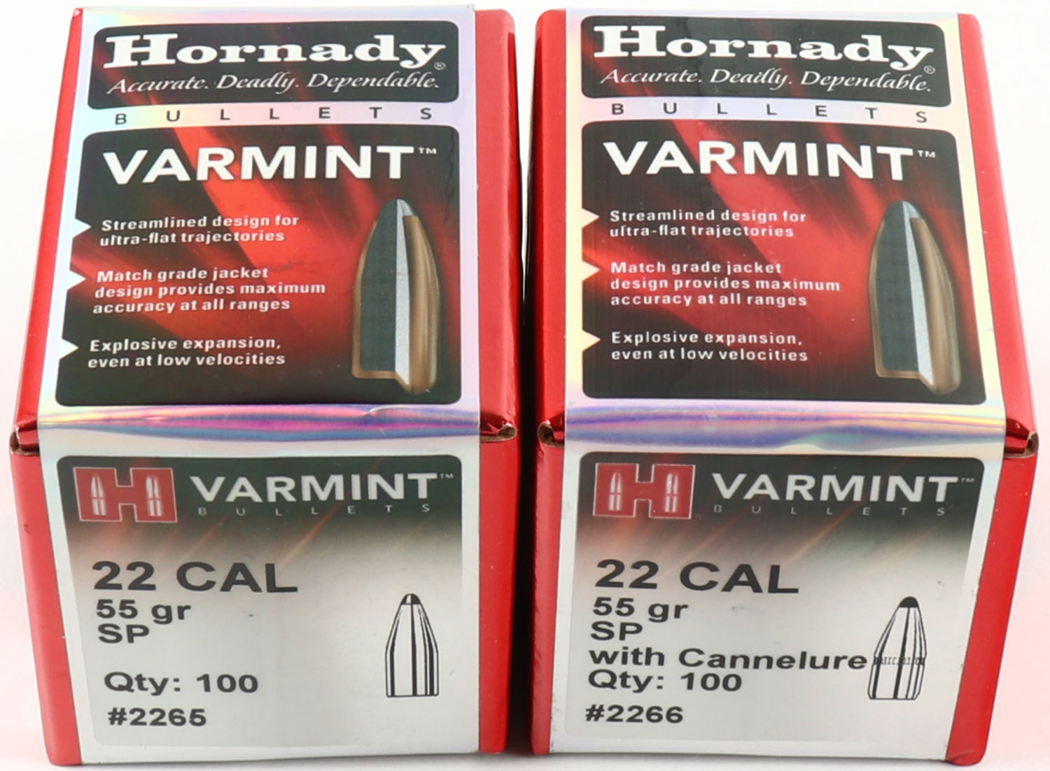 | Hornady, Varmint, Lot of (2), .22 Cal., 55 Grain SP with Cannelu...