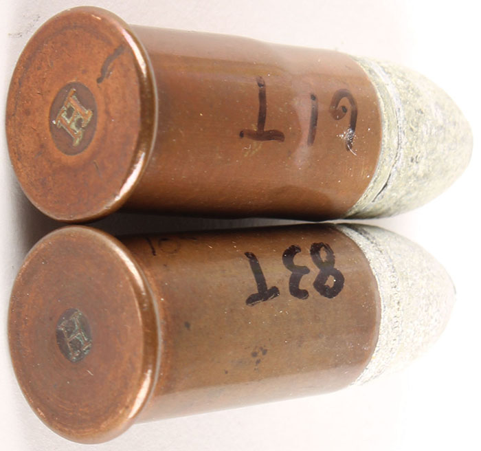 Lot of 2. 56-52 Spencer Rimfire. HS:''H raised''. FN Lead. Different sized H's. Grade: Very Good - Value: 30 to 60