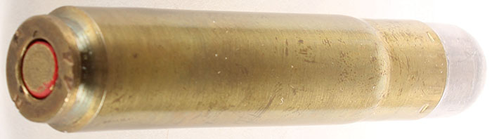 .600 Nitro RIMLESS. Used a .50 caliber case (HS:''RA 44''), RN Lead. Has rebated rim .593'' in diameter, CL: 2.97''. Grade: Very Good - Value: 30 to 50