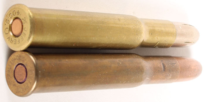 Lot of 2. 450-400 Nitro (3'' case), (1) HS:''KYNOCH 400 NITRO'', RN CJ SP. (1) HS:''JEFFERY C .400,S. K'', RN CN FMJ. Grade: Very Good - Value: 10 to 40