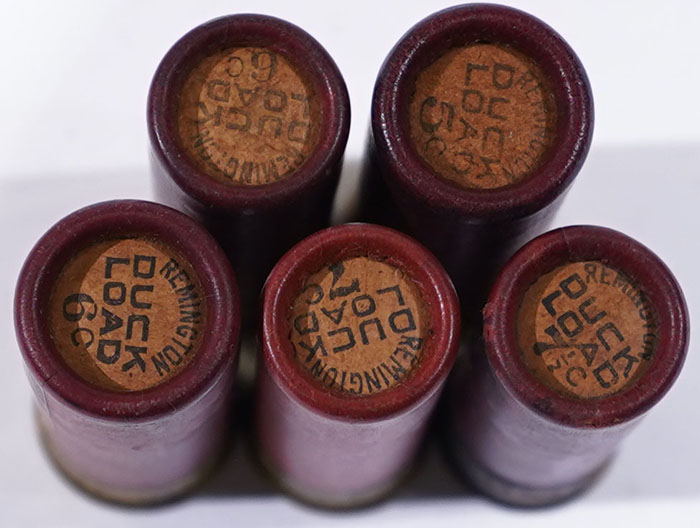 Lot of 5, TW= DUCK LOAD, see photo for details, loaded red paper case. Grade: Very Good ++ - Value: 6 to 30