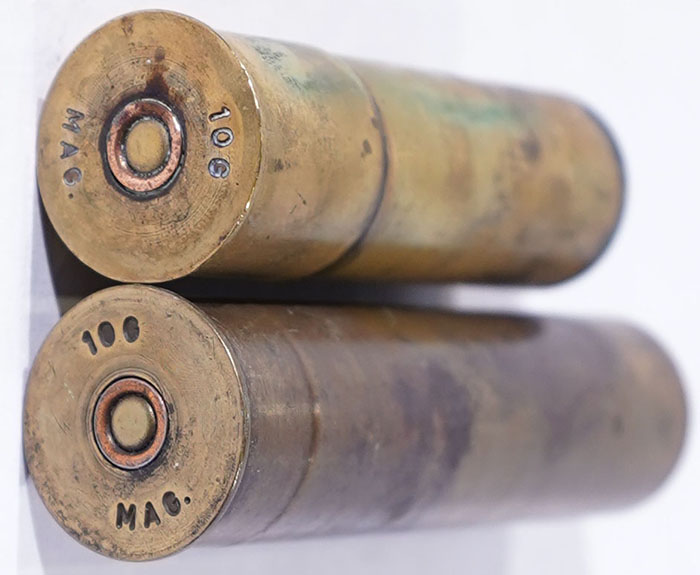 | Lot of 2 10ga Mag brass shot shells, loaded. Grade: Very Good ...