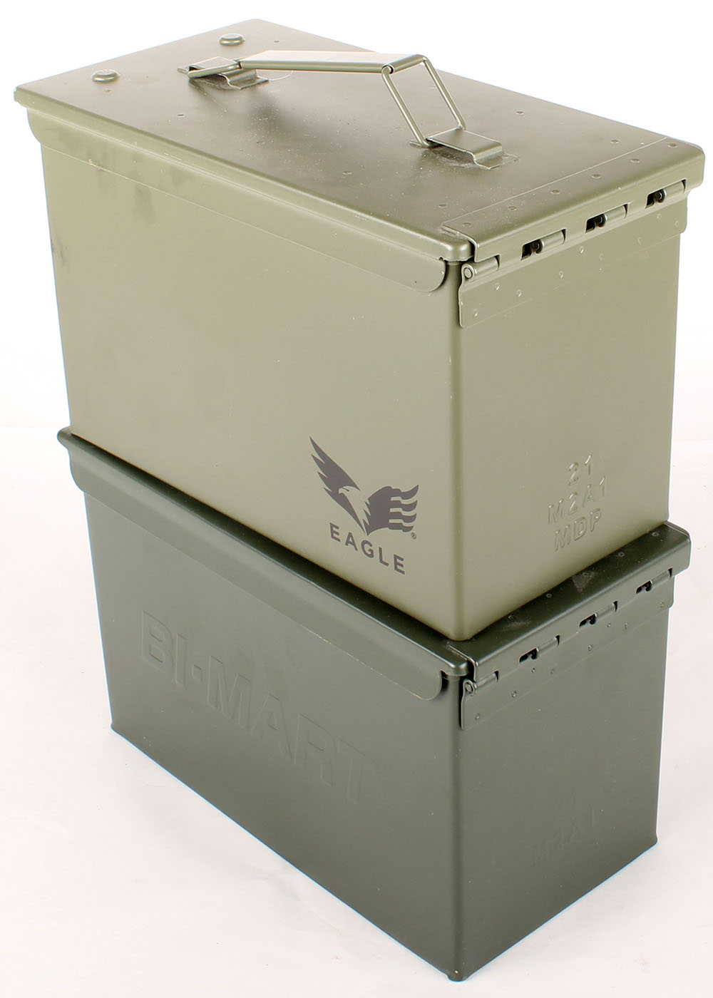 | Lot of two M2A1 .50 Cal metal ammo cans, both empty, insides of ...